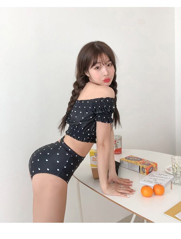 【水着】水着 ビキニ レディース 大人 可愛い おしゃれ 体型カバー ドット オフショルダー 20代 30代 40代 2点セット 水着ビキニ 韓国 水着 マイクロビキニ 海 ビーチ プール リゾート スイムウェア レトロ M L XL