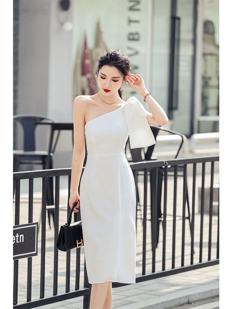 【パーティードレス】パーティードレス 結婚式 結婚式のお呼ばれ 20代 30代 40代 ワンピース 膝下 白 ホワイト ピンク 体型カバー お呼ばれドレス フォーマルドレス 二次会 パーティー お呼ばれ ワンショルダー お呼ばれ フォーマルフォーマルワンピース S-XL