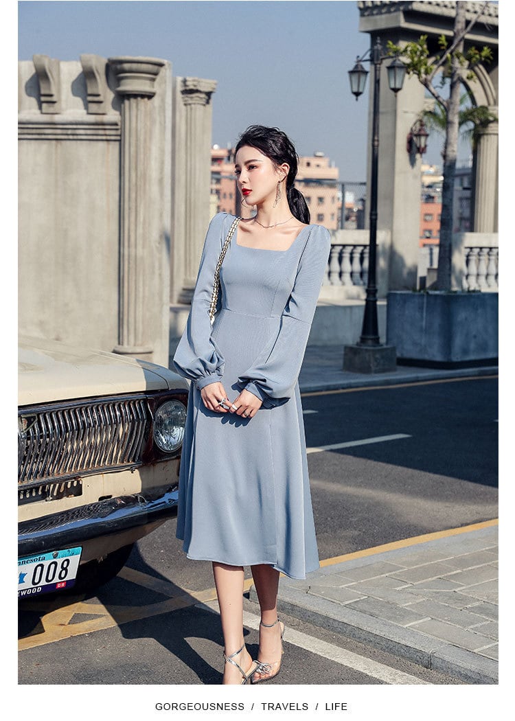 スクエアネックでデコルテを美しく魅せてくれる。