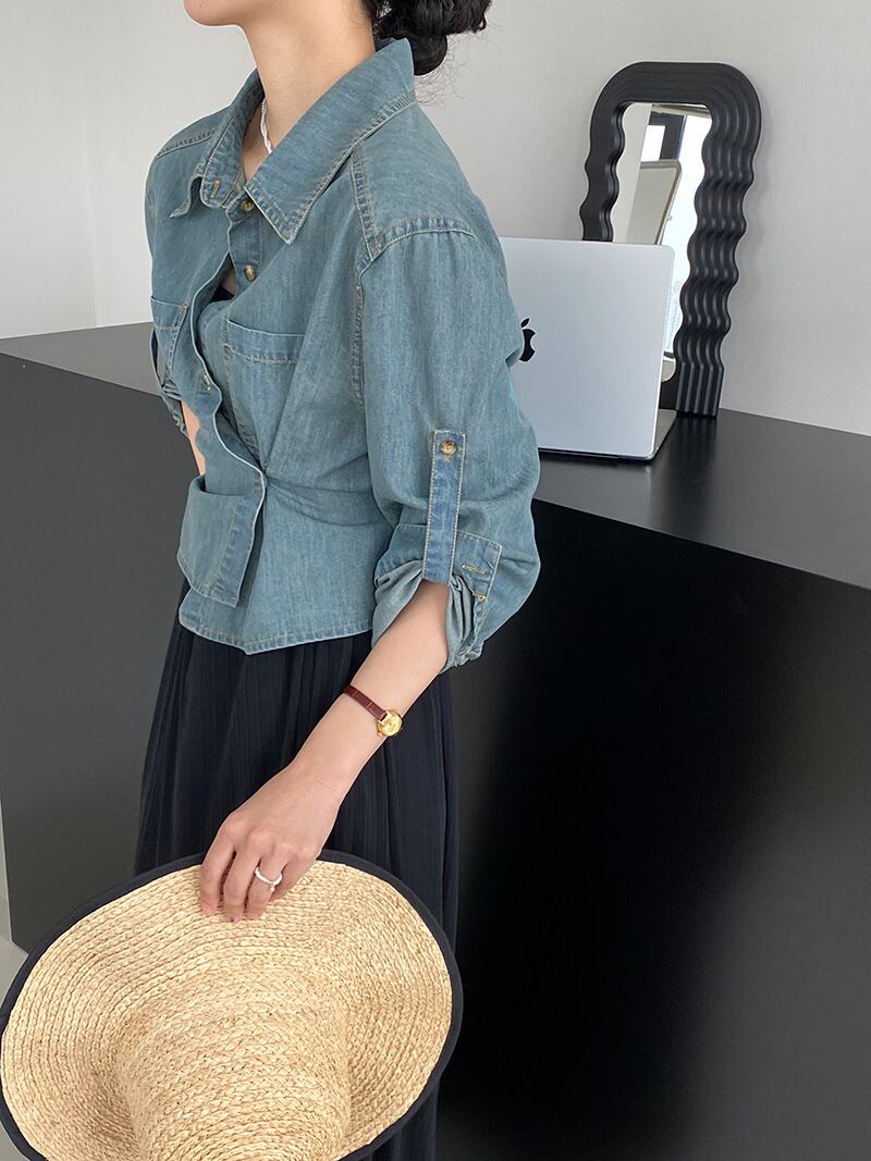 【シャツ】 レディース シャツ 無地 デニム レディース シャツ ブラウス 韓国 ブラウス 春 夏 秋 20代 30代 40代 シンプル ブラウス きれいめ シャツブラウス シャツ ブラウス レディース 半袖 五分袖 ブラウス 体型カバー S-M