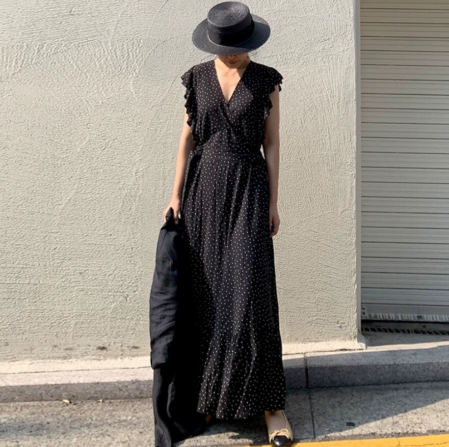 【ワンピース】ワンピース 春 夏 秋 ワンピース ドット ロング マキシ ワンピース 20代 30代 40代 マタニティ ワンピース レディース ロング丈 韓国 ワンピース ドレス 黒 ブラック 緑 春秋 ワンピース可愛い カジュアル ワンサイズ