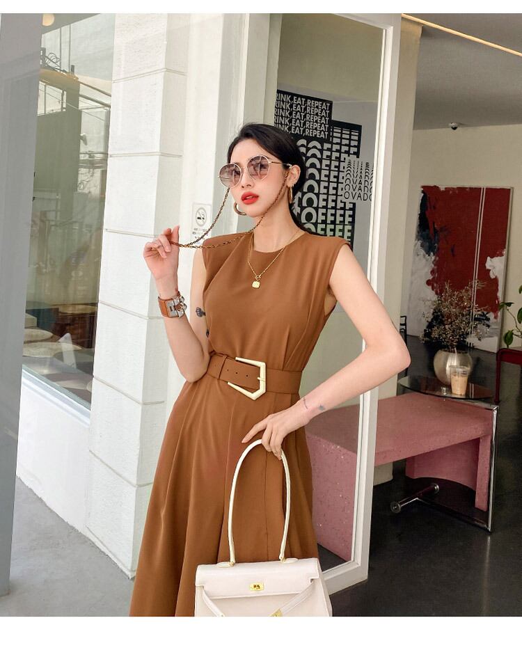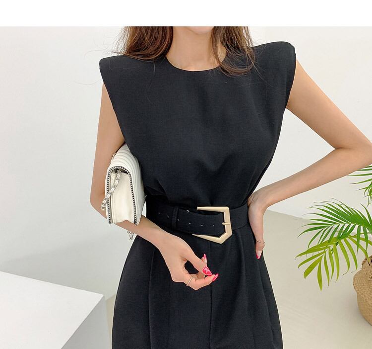 ウエストのベルトで腰まわりを引き締め華奢見え。