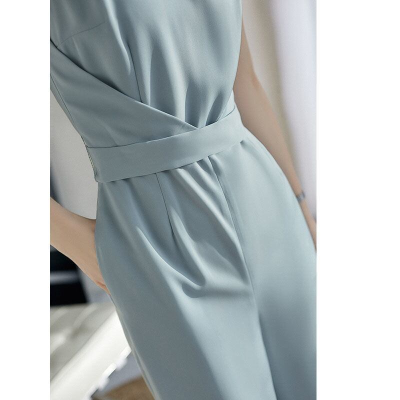 涼しげなアイシーカラーのパンツドレス。