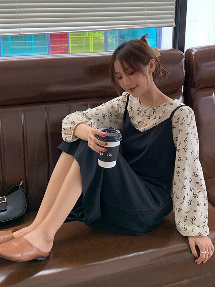 【セットアップ】 花柄 ブラウス ロング キャミ ワンピース 秋冬 レディース 春 秋 冬 セットアップ レディース 大人 可愛い きれいめ S-XL