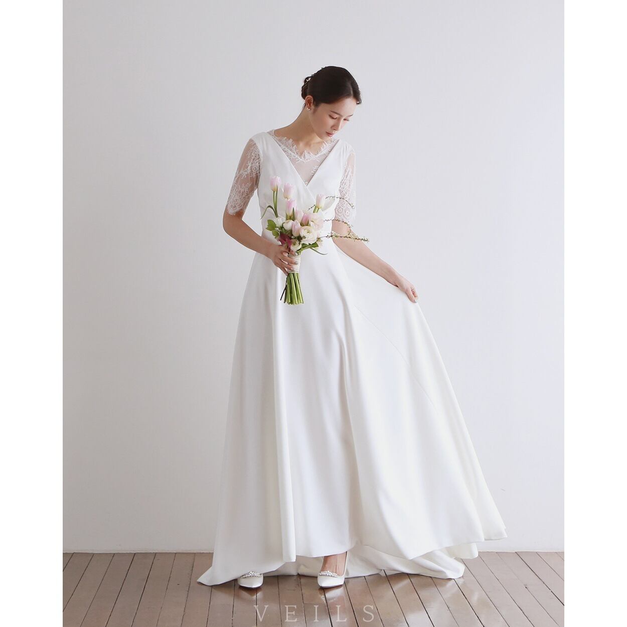 シンプルなお作りで素材を引き立ててくれるドレスです♡