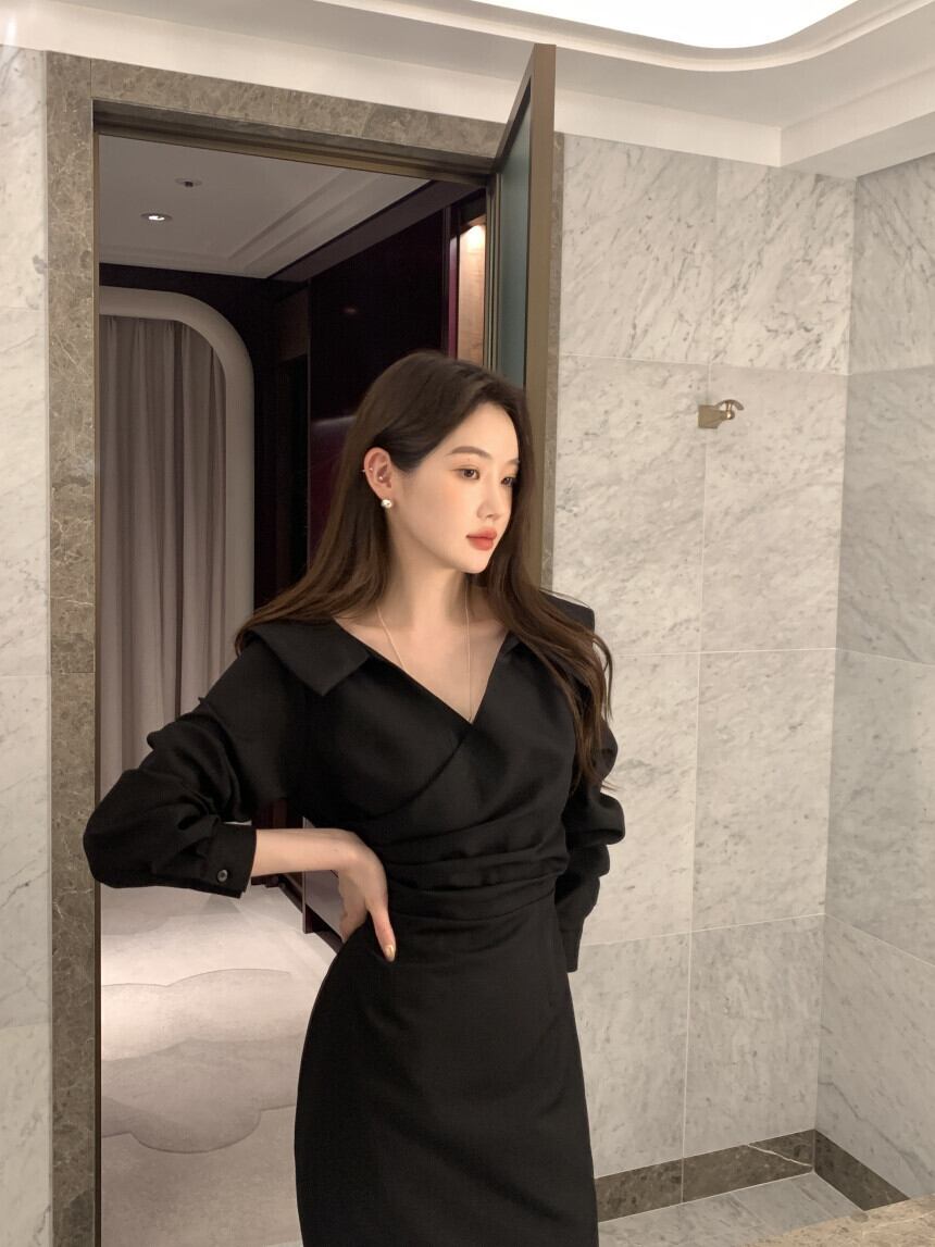 【ワンピース】 ワンピース レディース ロング ワンピース 袖あり 20代 30代 40代 ワンピース 春 秋 冬 ワンピース ドレス 韓国 ワンピース 秋冬 ワンピース エレガント きれいめ グリーン アプリコット ブラック ワンサイズ