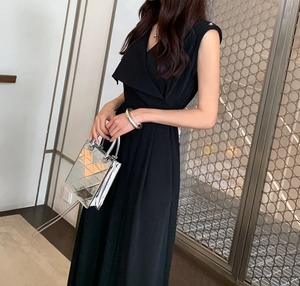 深めのスリットとデザイン性の高い胸元がエレガントなパンツドレス。