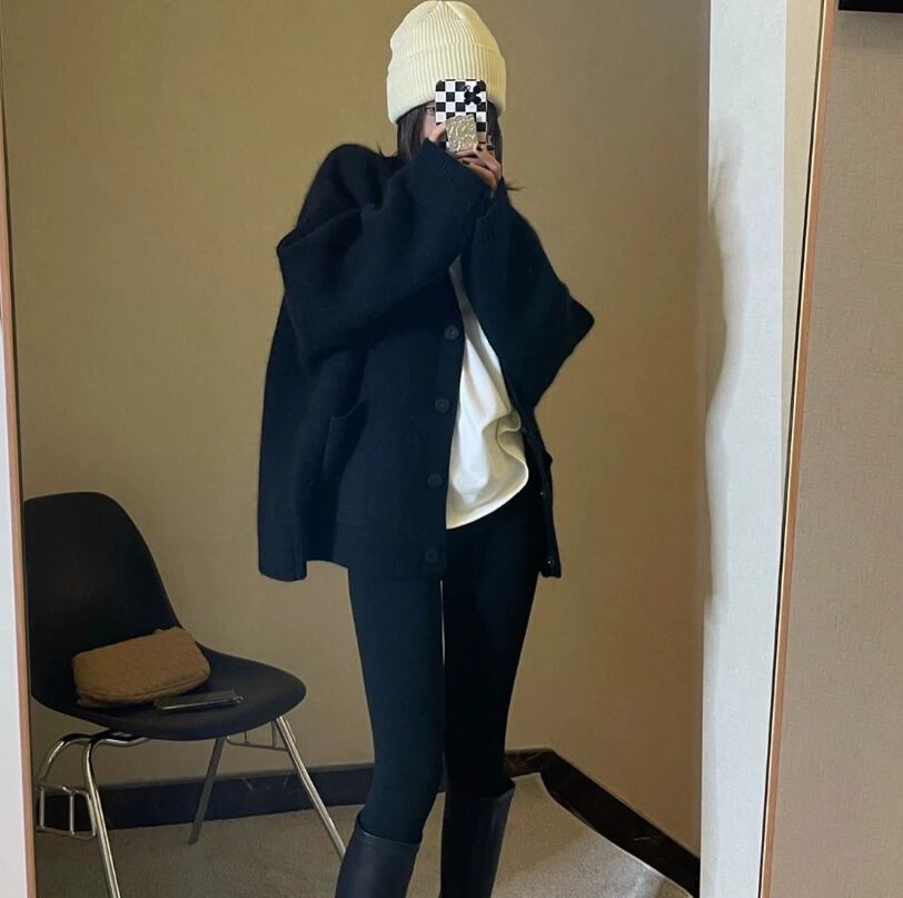 一枚でさっとコーデが決まるシンプルなニットカーディガン。