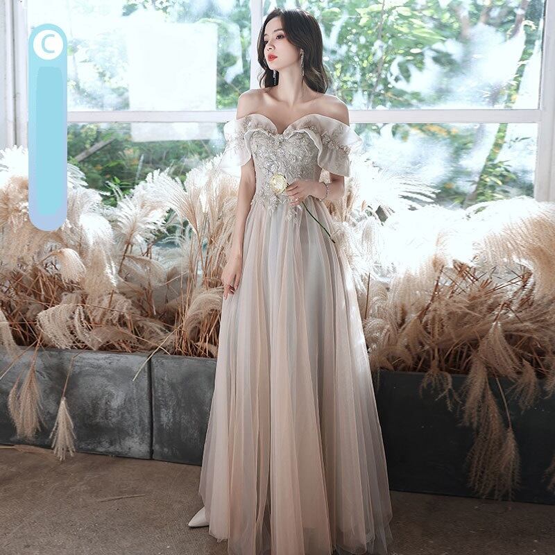 バストラインのスパンコールとチュールがエレガントなパーティードレス。