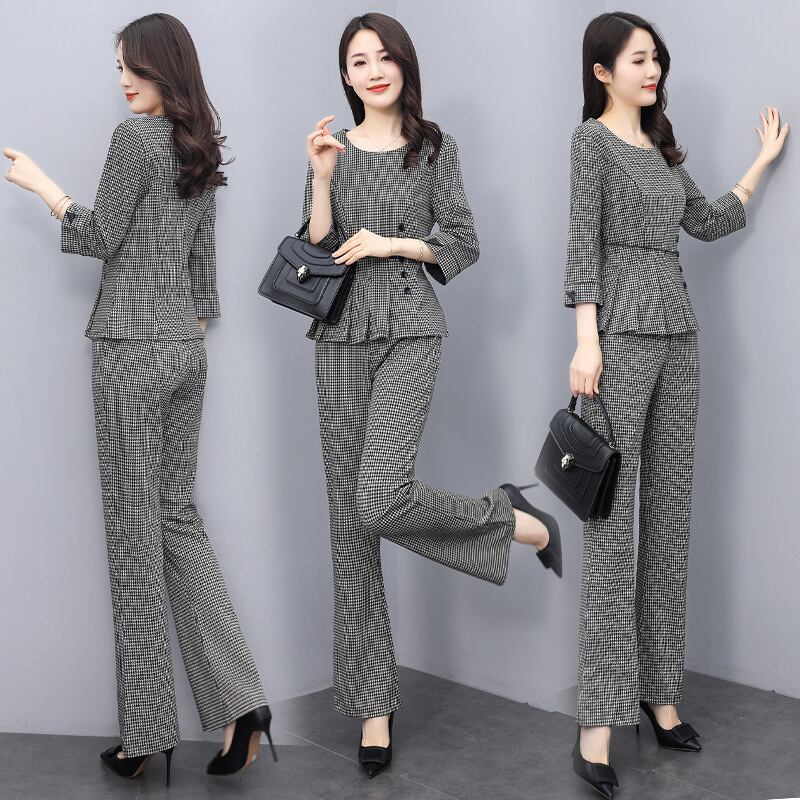 ウエストのペプラムが腰まわりをカバーしてくれるセットアップ。