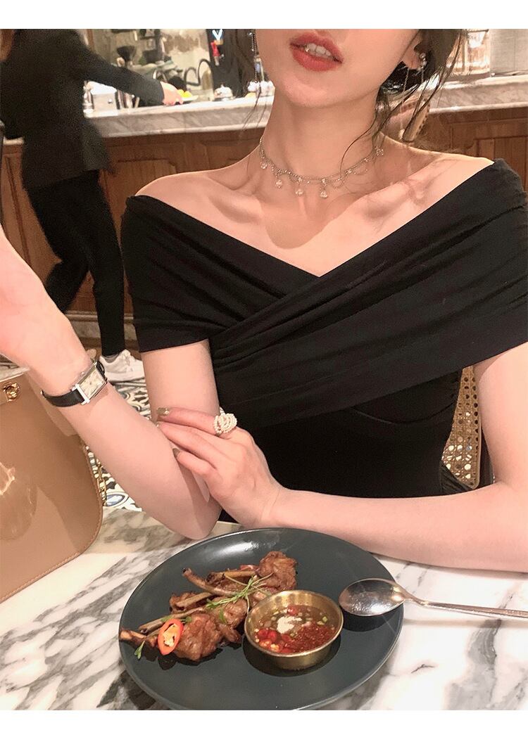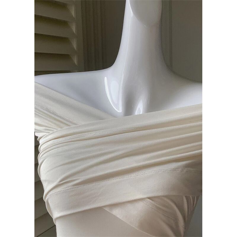 胸元がクロスしたデザインでバストアップ&ウエストほっそり。
