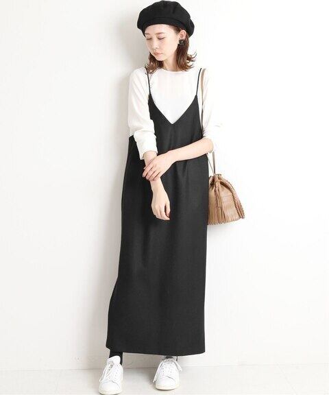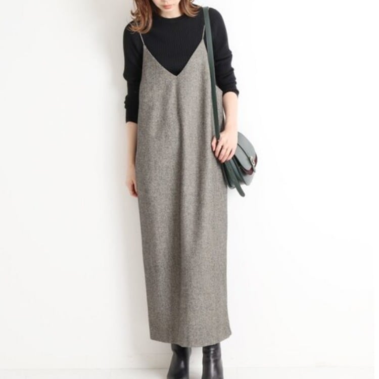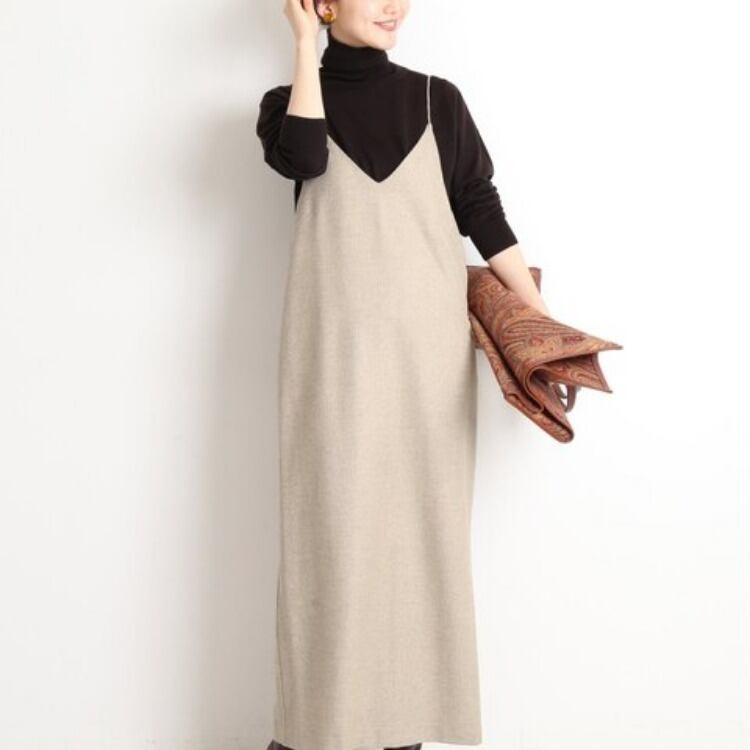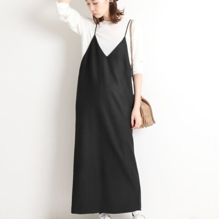 シンプルで大人可愛いvネックキャミワンピース。