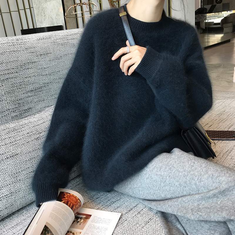 カジュアルなふわふわモヘアタッチセーター。