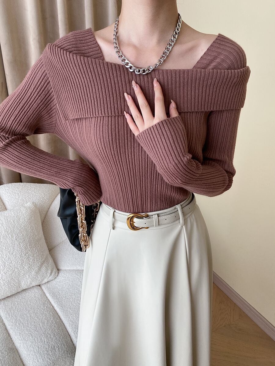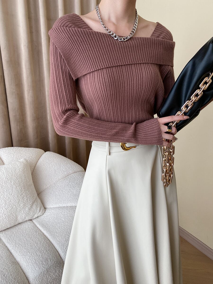 大人っぽく着こなせる!アシンメトリーなリブニット。