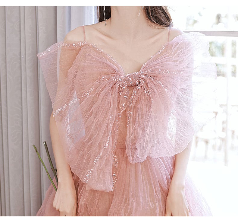 バックは編み上げになっていて上品な雰囲気&調節も可能。