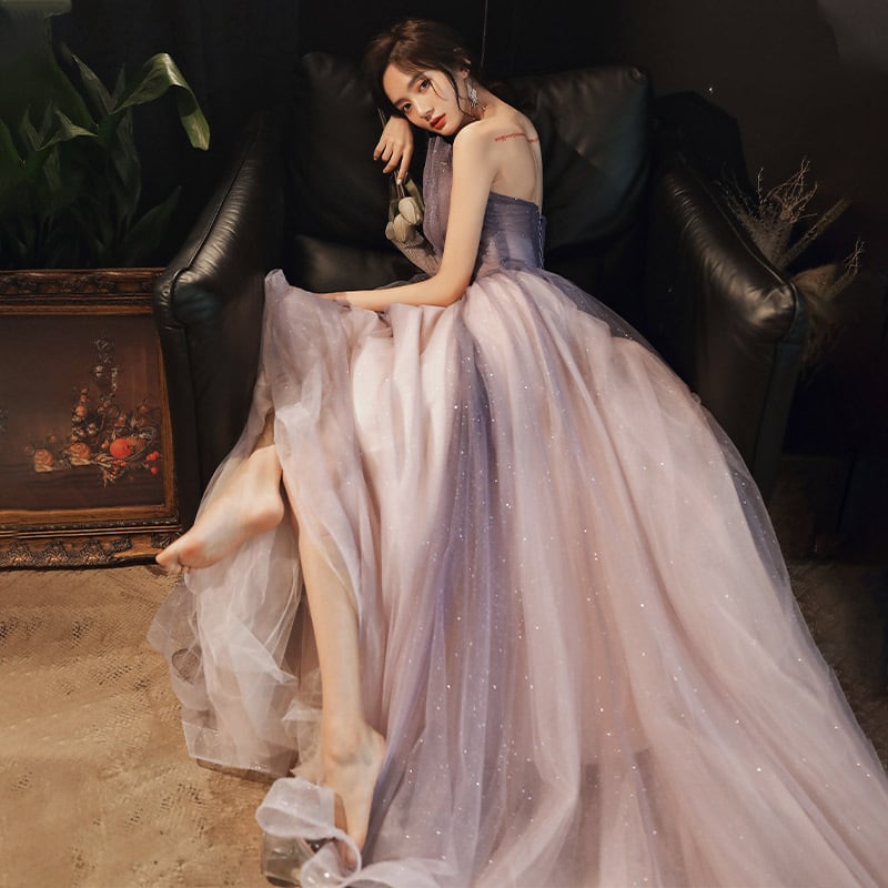 歩くたびに揺れる優雅なグラデーションカラーのチュールが印象的。