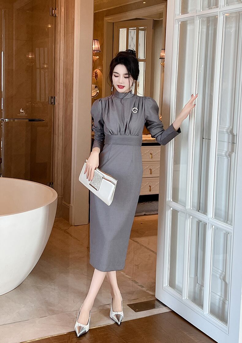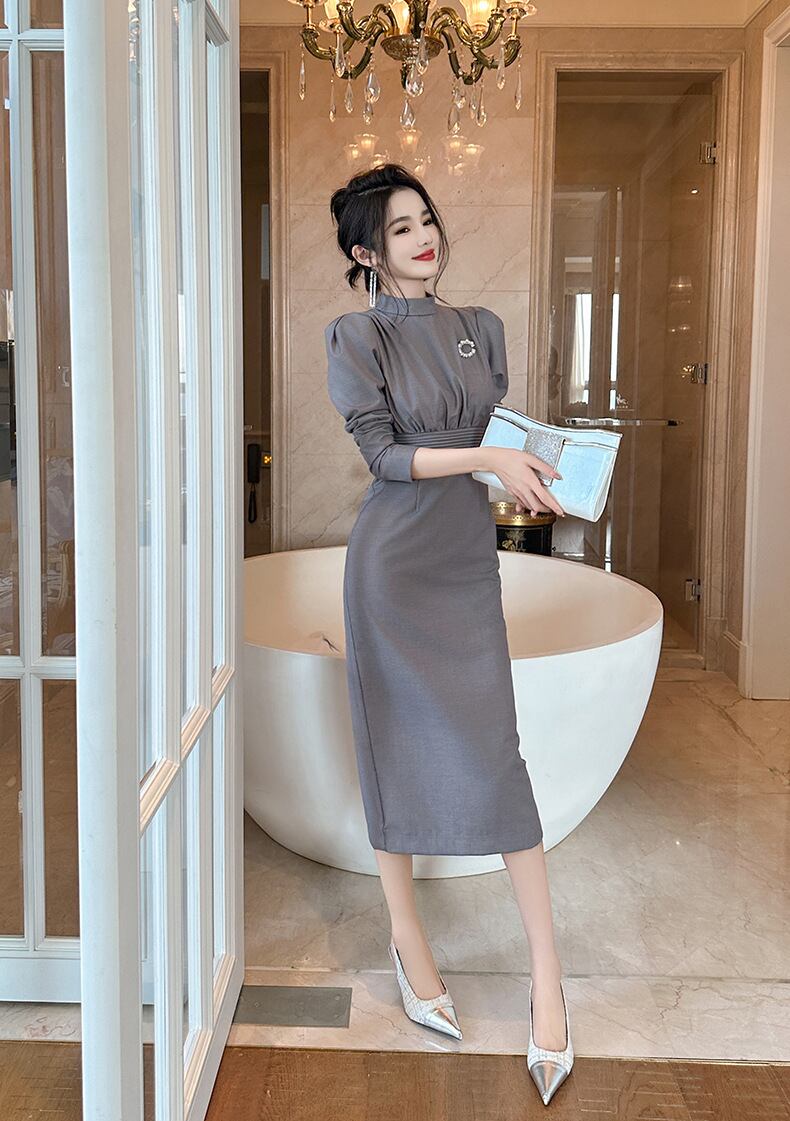 【パーティードレス】 パーティードレス 結婚式 結婚式のお呼ばれ お呼ばれドレス 20代 30代 40代 ワンピース ドレス フォーマルドレス 二次会 パーティー お呼ばれ 袖あり お呼ばれ フォーマル フォーマルワンピース エレガント おしゃれ シンプル グレー オレンジ S-L