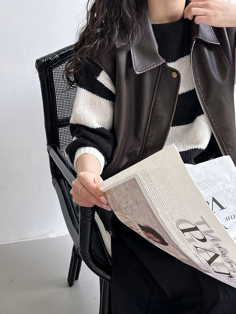 大人可愛いカジュアルなボーダーニットセーター。