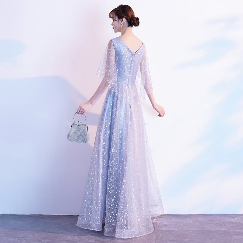 星柄をプリントしたチュールを重ねたエレガントでドレッシーなパーティードレス。