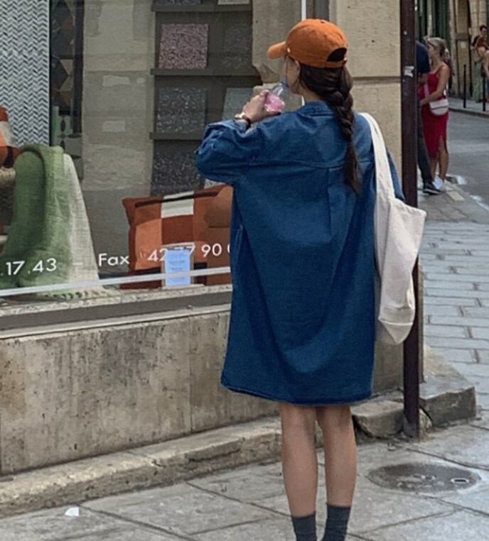 カジュアルなミニ丈のデニムワンピース。