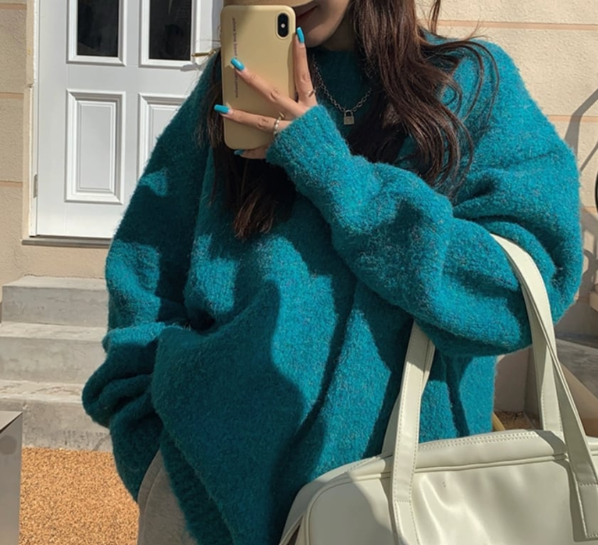 オーバーサイズのゆったりとしたシンプルニットセーター。