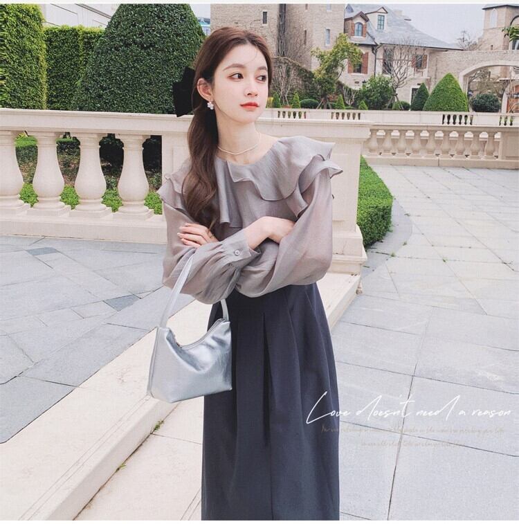 【セットアップ】 フリル ブラウス ワンピース 秋冬 レディース 春 秋 冬 セットアップ レディース 大人 可愛い きれいめ ママ S-XL
