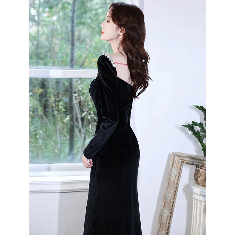 【パーティードレス】大きいサイズ パーティードレス エレガント 結婚式 結婚式のお呼ばれ お呼ばれドレス 袖あり 20代 30代 40代 ロング ドレス フォーマルドレス 二次会 パーティー お呼ばれ フォーマル フォーマルワンピース おしゃれ シンプル ブラック 黒