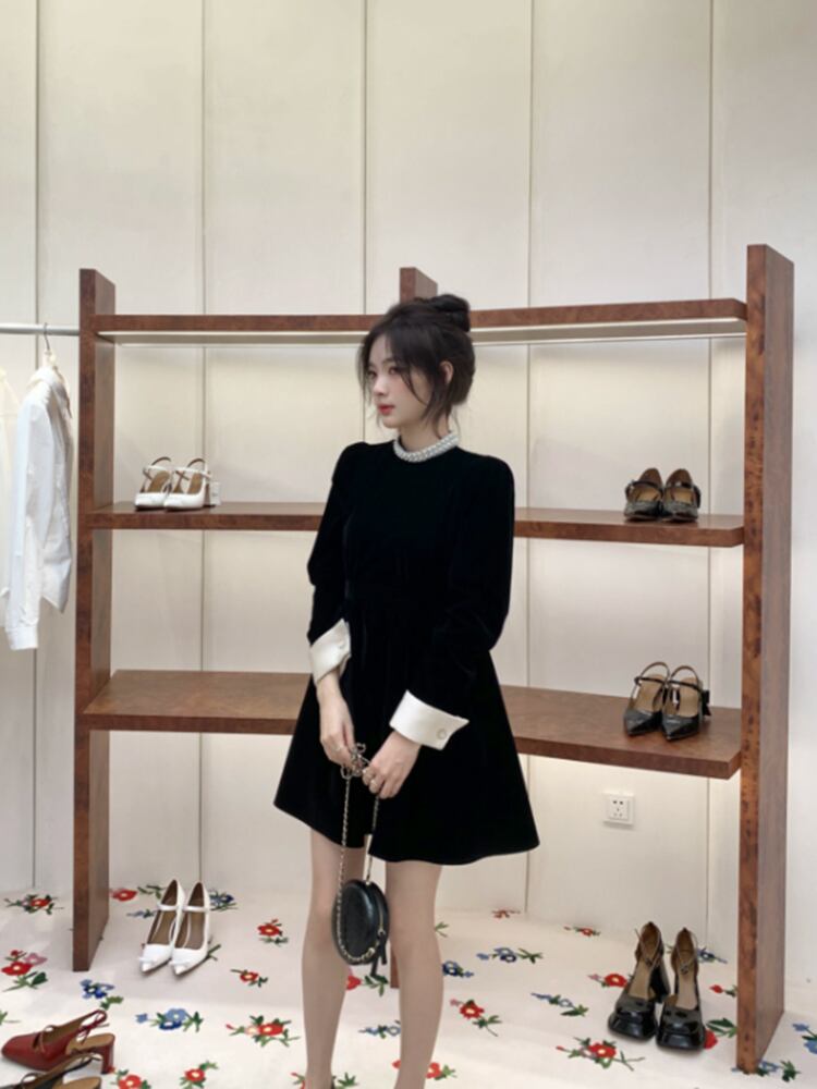 お首まわりのパールやお袖がトレンディで今年らしい。