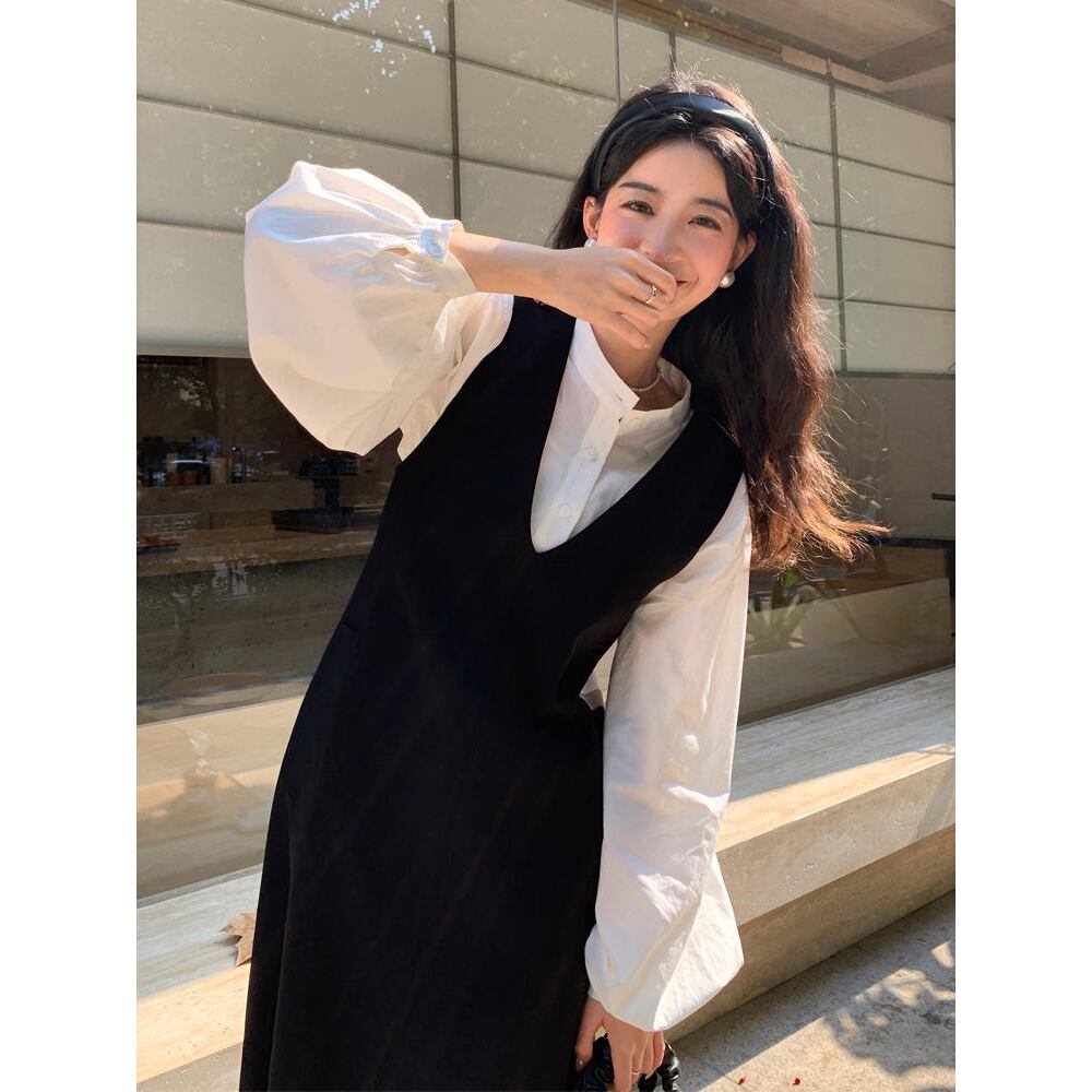 【ワンピース】ワンピース レディース ロング ワンピース ジャンスカ ワンピース 袖あり 20代 30代 40代 ワンピース 春 秋 冬 ワンピース ドレス 韓国 ワンピース ドレス 秋 冬 秋冬 ワンピース 大人 可愛い シンプル ブラック 黒 S-XL