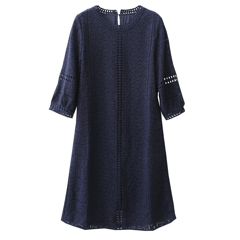 【ワンピース】大きいサイズ ワンピース レディース 大人 可愛い 20代 春 夏 秋 ミニ丈 ワンピース 婚活 食事会 顔合わせ 総レース 無地 七分袖 韓国 ワンピース ドレス 大人 可愛い きれいめ レトロ アプリコット ネイビー 青
