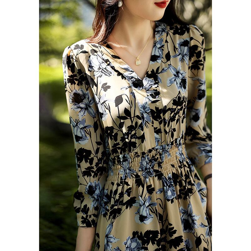 【ワンピース】ワンピース 春 秋 冬 ワンピース 花柄 ロングワンピース レトロ長袖 20代 30代 40代 レディース 韓国 ワンピース ドレス シフォン 春秋 ワンピース可愛いきれいめ S-XL