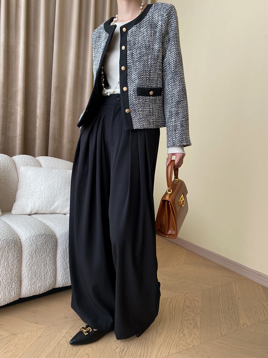 大人エレガントなバイカラーツイードノーカラージャケット。