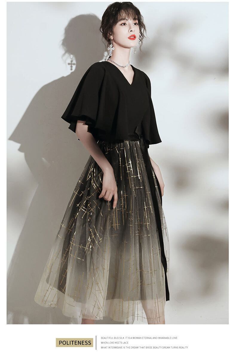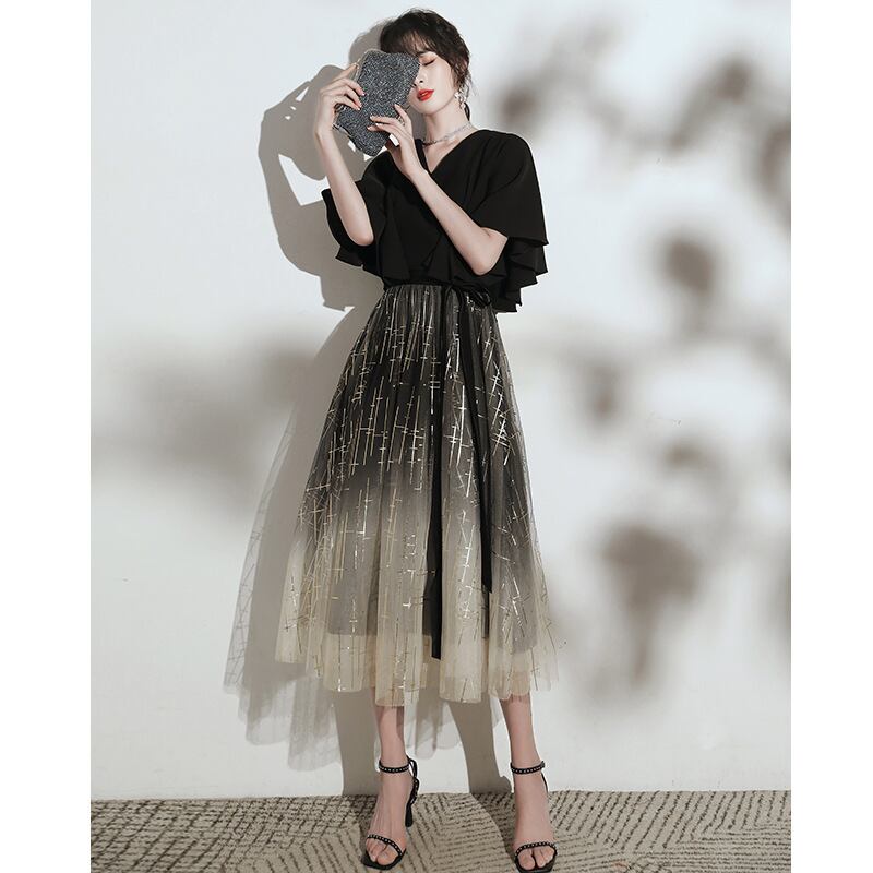 フレアスリーブとグラデーションカラーがエレガントなパーティードレス。