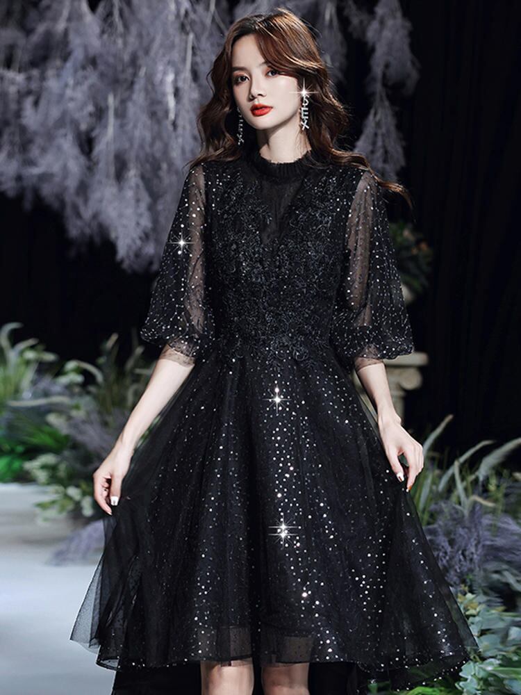 きらきらしたスパンコールがエレガントなパーティードレス。
