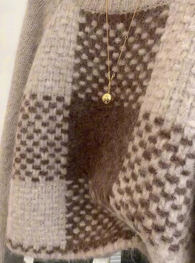 大人可愛いカジュアルなチェック柄のニットセーター。