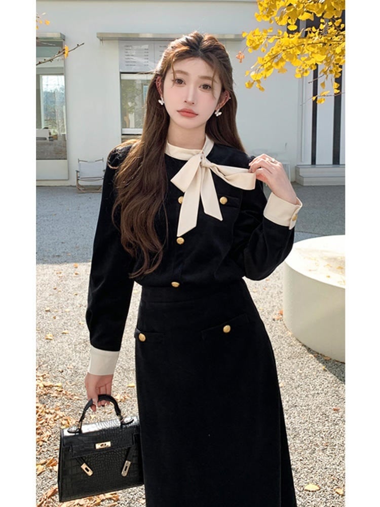【セットアップ】 ボウタイ ブラウス スカート 秋冬 レディース 春 秋 冬 20代 30代 40代 セットアップ レディース 卒業式 卒園式 入学式 入園式 母 ママ 服装 大人 可愛い エレガント きれいめ ブラック 黒 S-XL