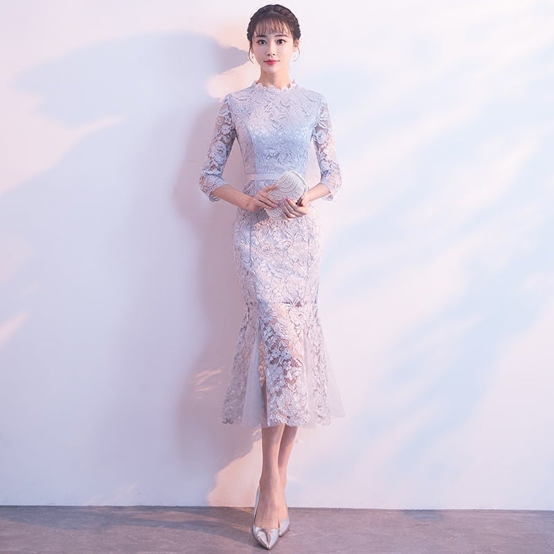 ドレッシーでエレガントなマーメイドラインのパーティードレス。
