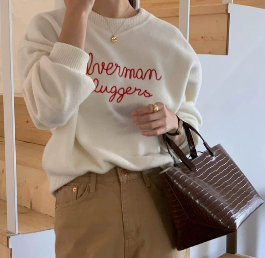 センターのレタープリントが大人可愛い起毛スウェットトレーナー。