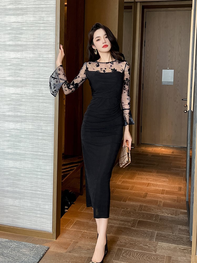 【パーティードレス】 パーティードレス 結婚式 結婚式のお呼ばれ お呼ばれドレス エレガント 20代 30代 40代 ワンピース ドレス フォーマルドレス 卒園式 卒業式 入園式 入学式 二次会 パーティー お呼ばれ 袖あり フォーマル フォーマルワンピース おしゃれ ブラック 黒 S-XL