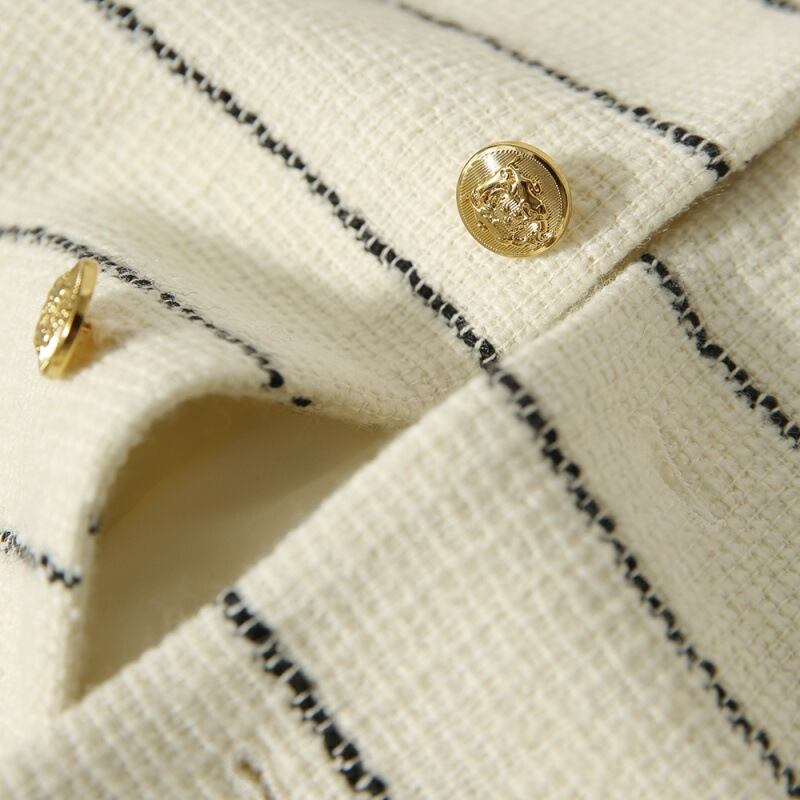 ノーカラーでお顔まわりすっきり華やかな印象に。