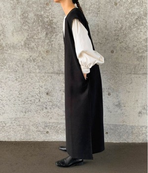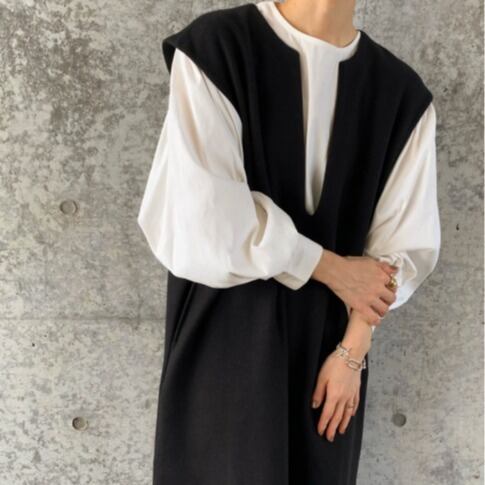 ぽわん袖のブラウスとのレイヤードコーデが◎