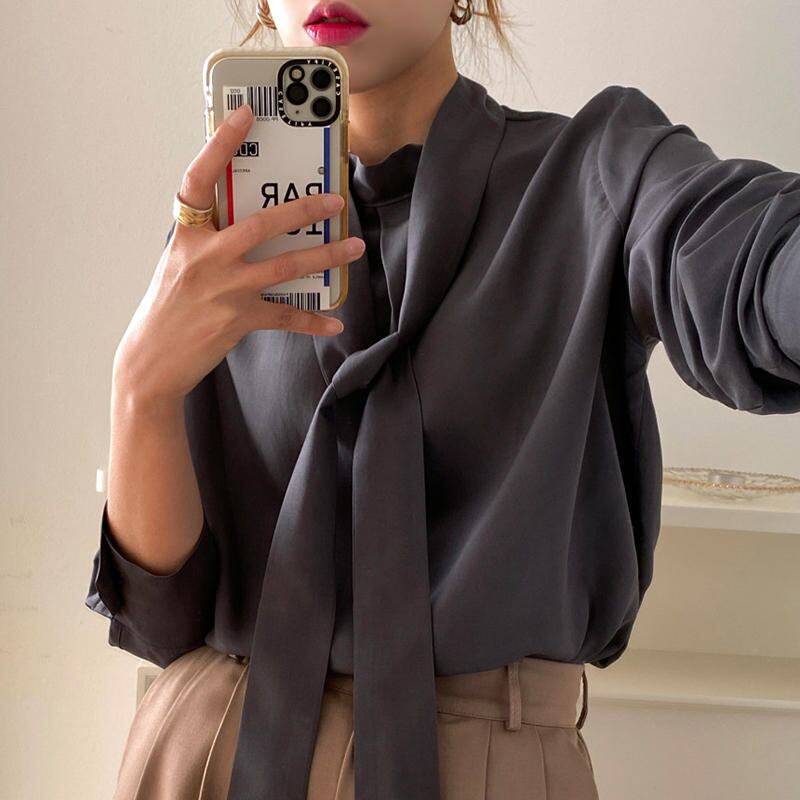 【ブラウス】 レディース ブラウス レディース ボウタイ ブラウス シャツ ブラウス 春 夏 秋 冬 20代 30代 40代 シンプル ブラウス きれいめ 大人 可愛い ダークグレー ピンク ワンサイズ