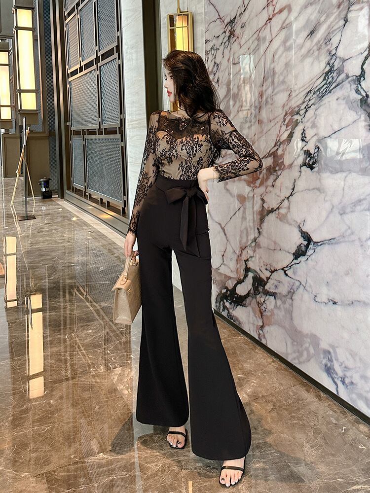 レース感がドレッシーな一着!のパンツドレス。