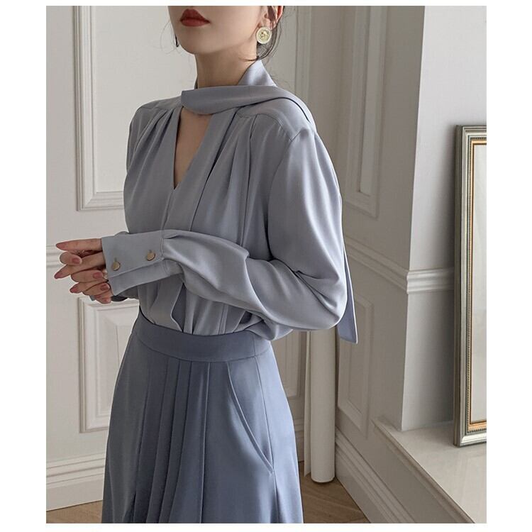 【ブラウス】レディース ブラウス レディース ボウタイ ブラウス シャツ ブラウス 春 夏 秋 冬 20代 30代 40代 シンプル ブラウス きれいめ 大人 可愛い ホワイト 白 ブルー S-M