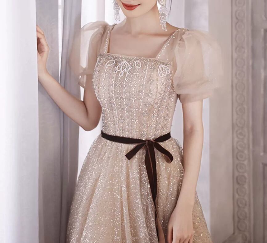 全身にほどこされたきらびやかなラメがエレガントなカラードレス。
