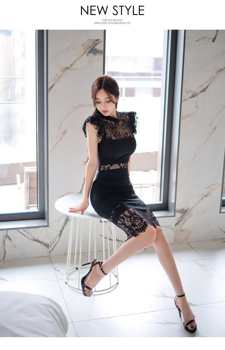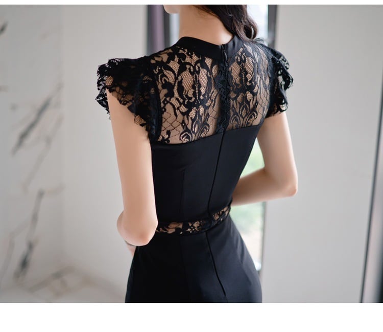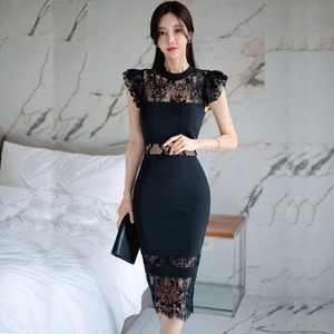 大人エレガントでレーシィなミディ丈ワンピースドレス。