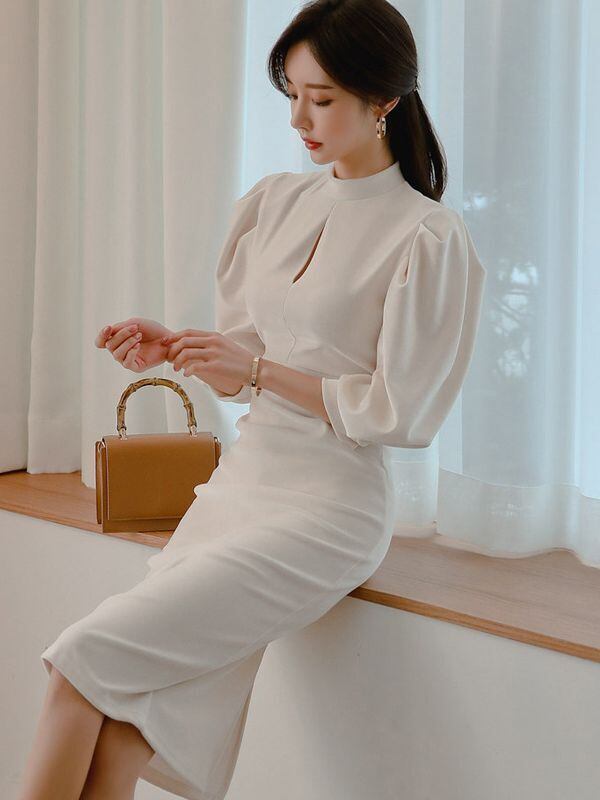 【パーティードレス】 パーティードレス 結婚式 結婚式のお呼ばれ お呼ばれドレス 20代 30代 40代 ワンピース ミディ 膝丈 ホワイト 白 体型カバー フォーマルドレス 二次会 パーティー お呼ばれ 袖あり フォーマル フォーマルワンピース おしゃれ 着痩せ シンプル S-XL