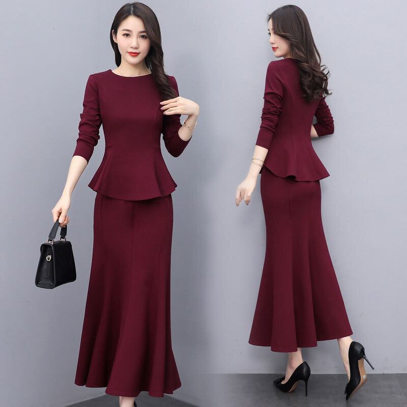 ペプラム&フィッシュテールデザインが女性らしくエレガント。