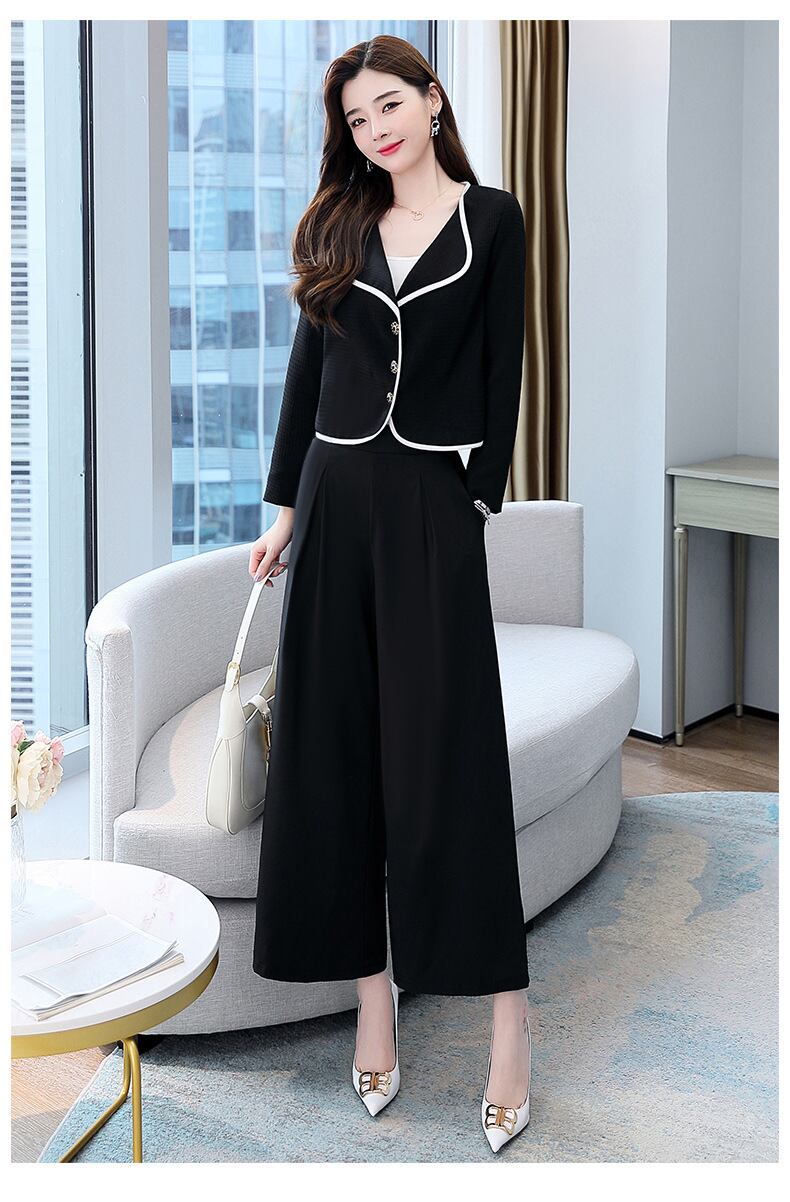 大人エレガントなショート丈ジャケット+ワイドパンツのセットアップドレス。