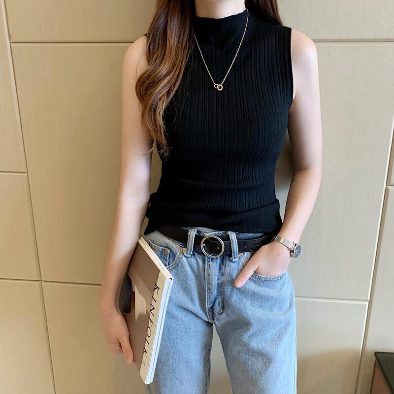 ほどよいぴったり感のニットで一枚で着るのもジャケットなどのインナーにもおすすめ。